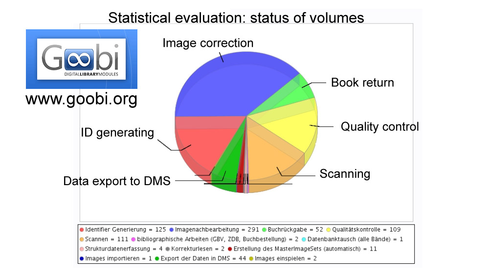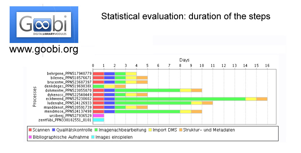Every book at each time receives a status in the goobi workflow system. The PPN numbers refer to the titles. At the same time the goobi system controls which person has done which work at which date.