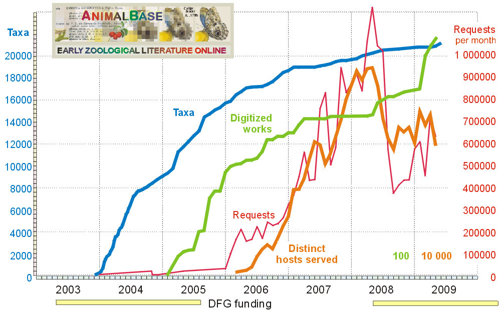 History of AnimalBase, DFG = German Science Foundation, between 2005 and 2008 we had no funds.