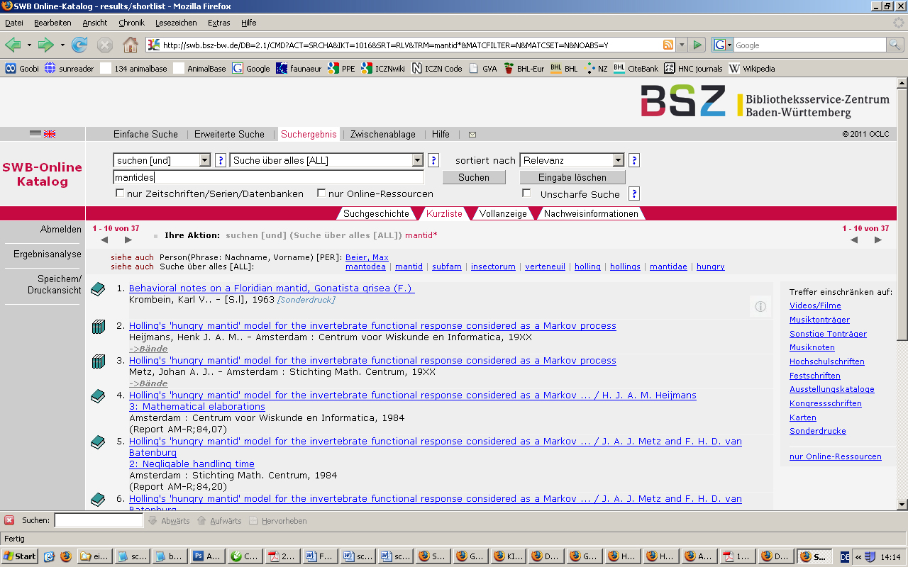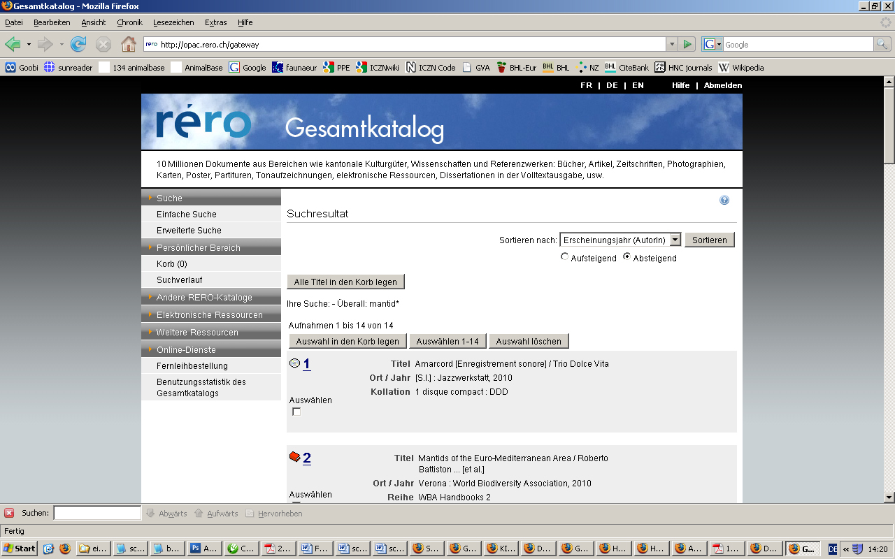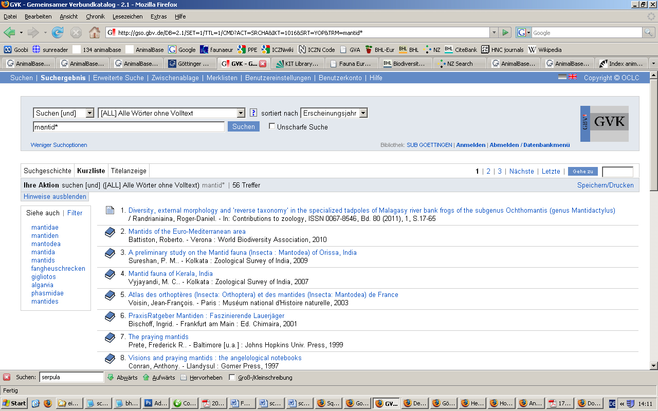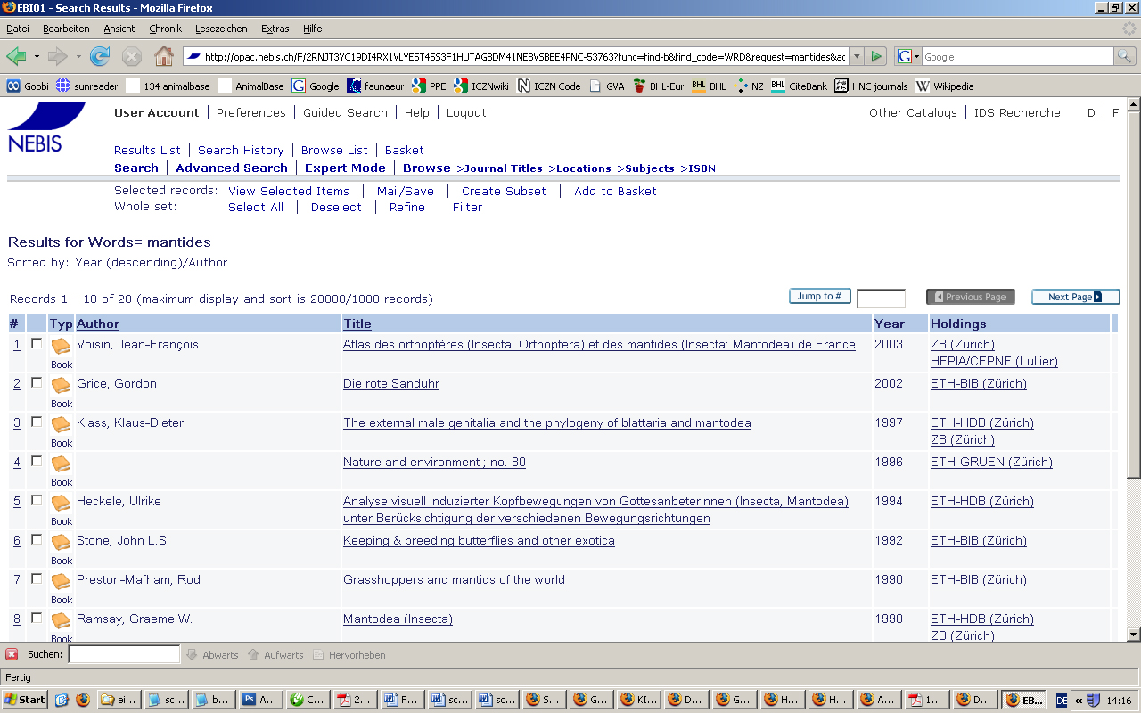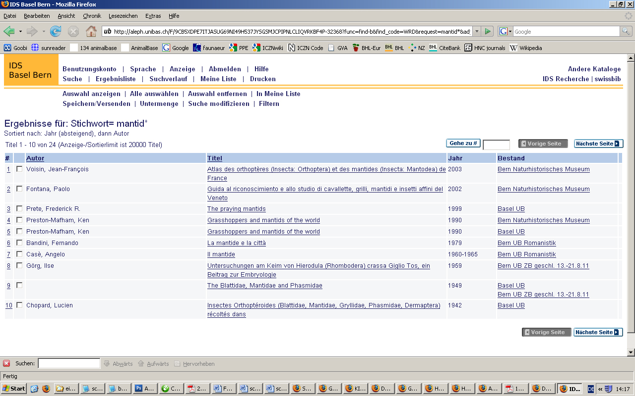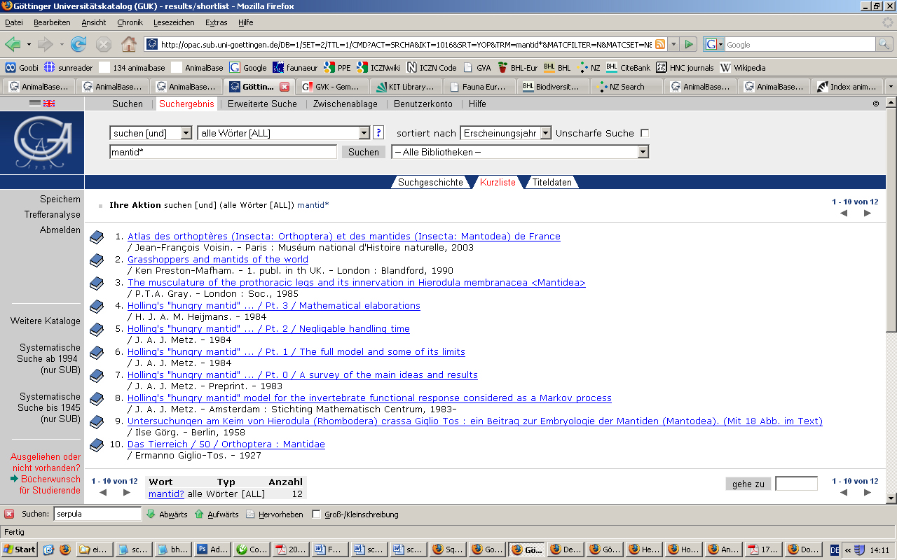 10 titles: GUK OPAC Göttingen, IDS Basel
