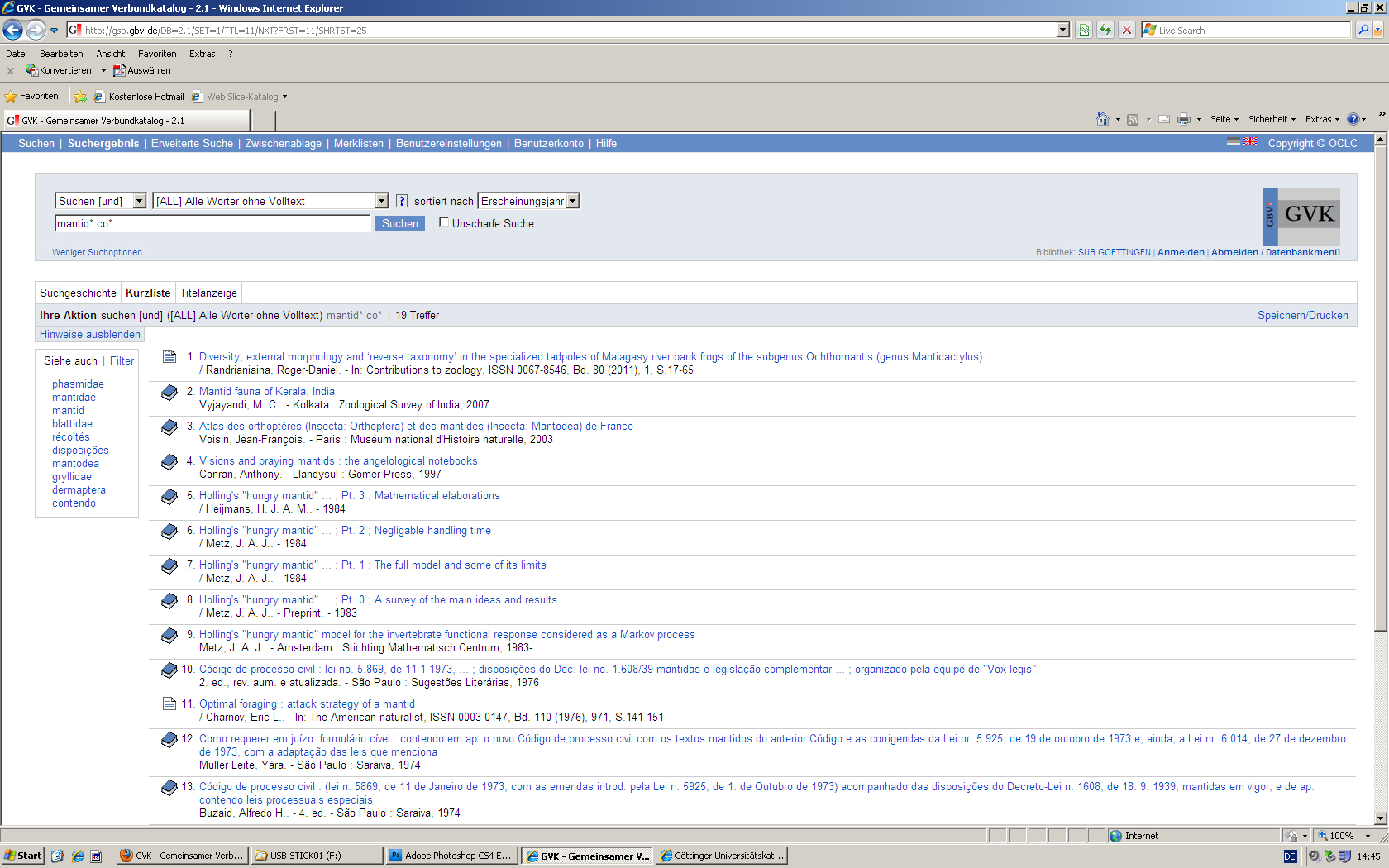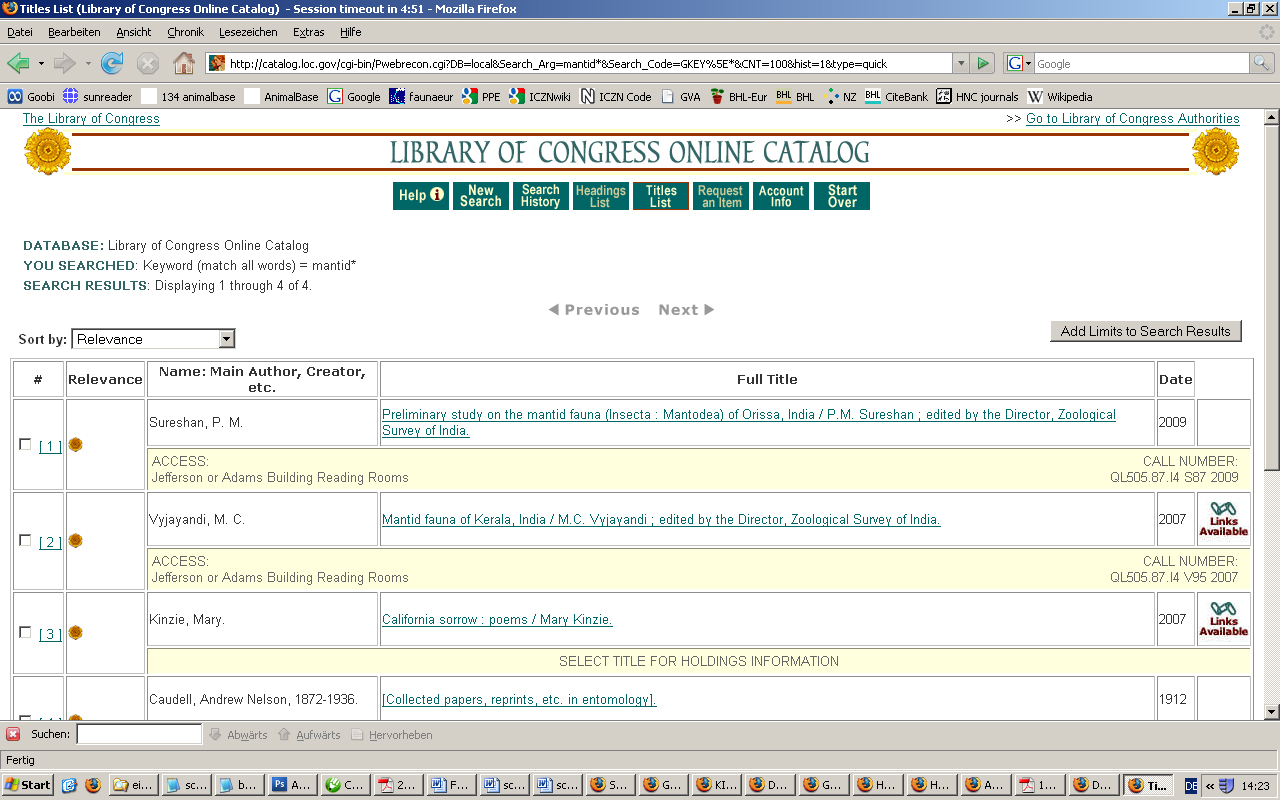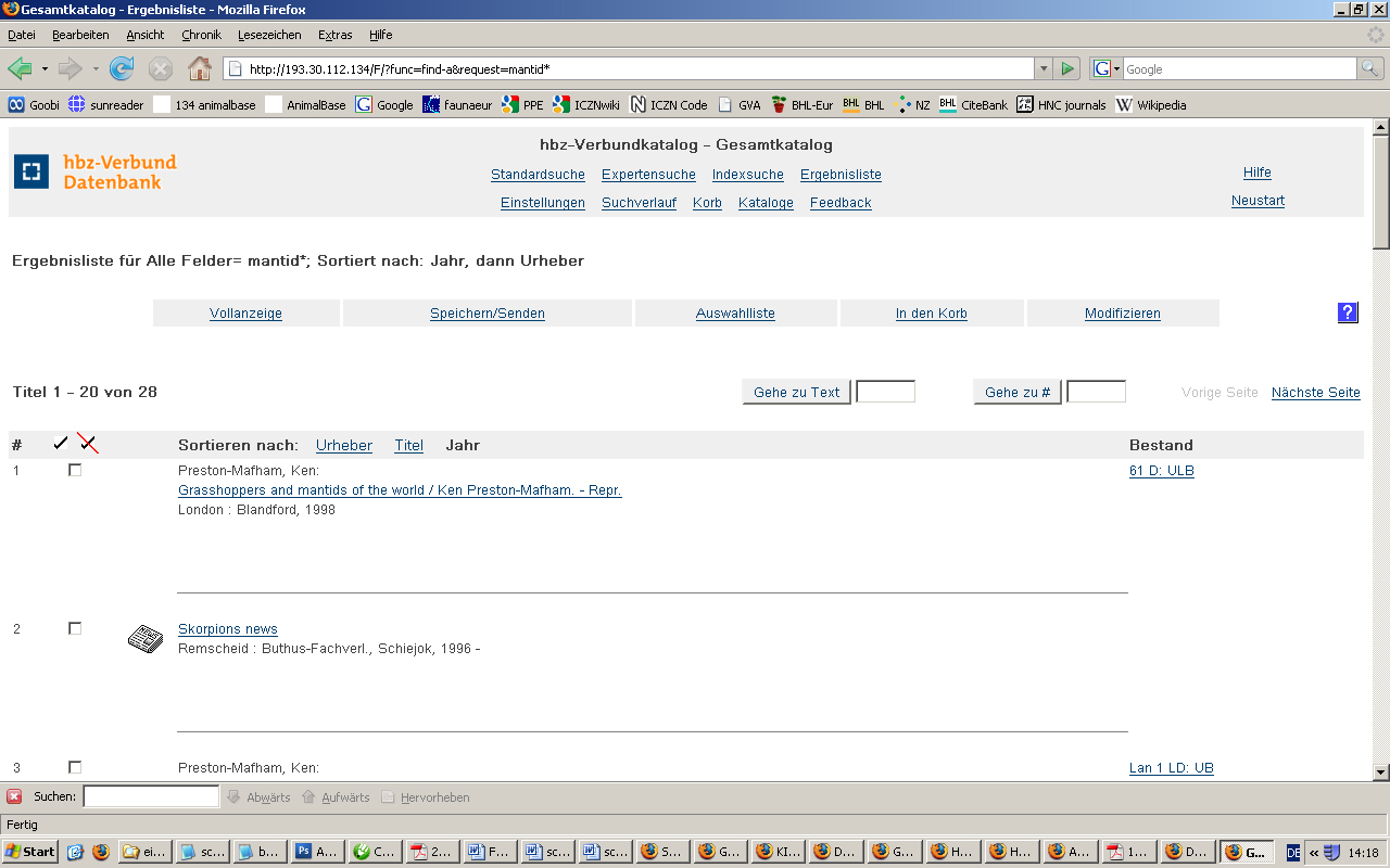 9 titles: COPAC, GVK, NEBIS Zürich