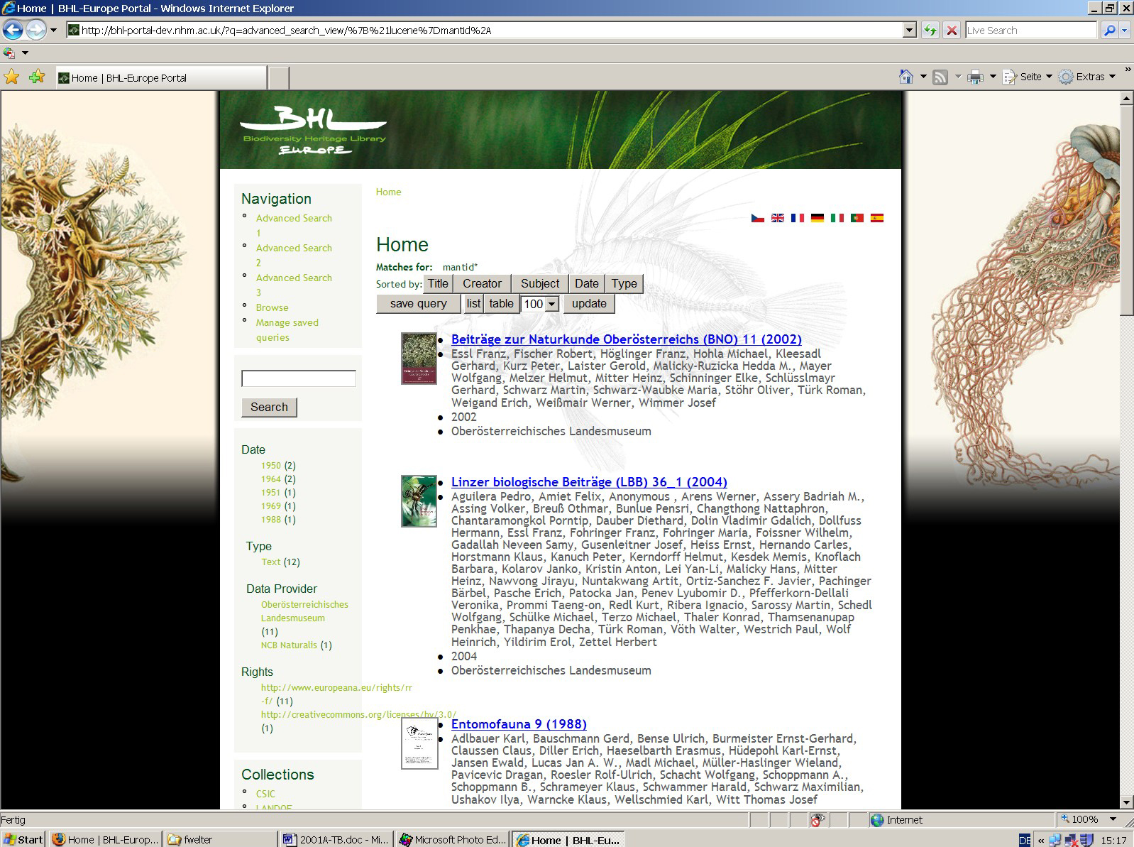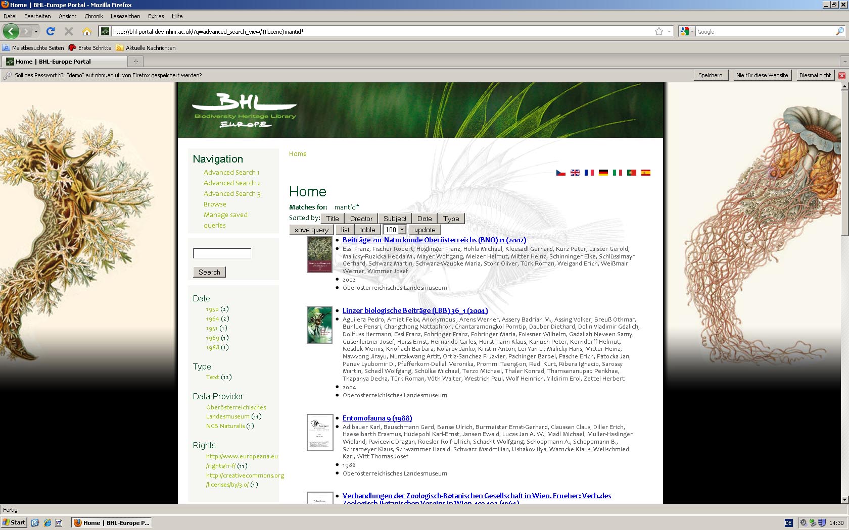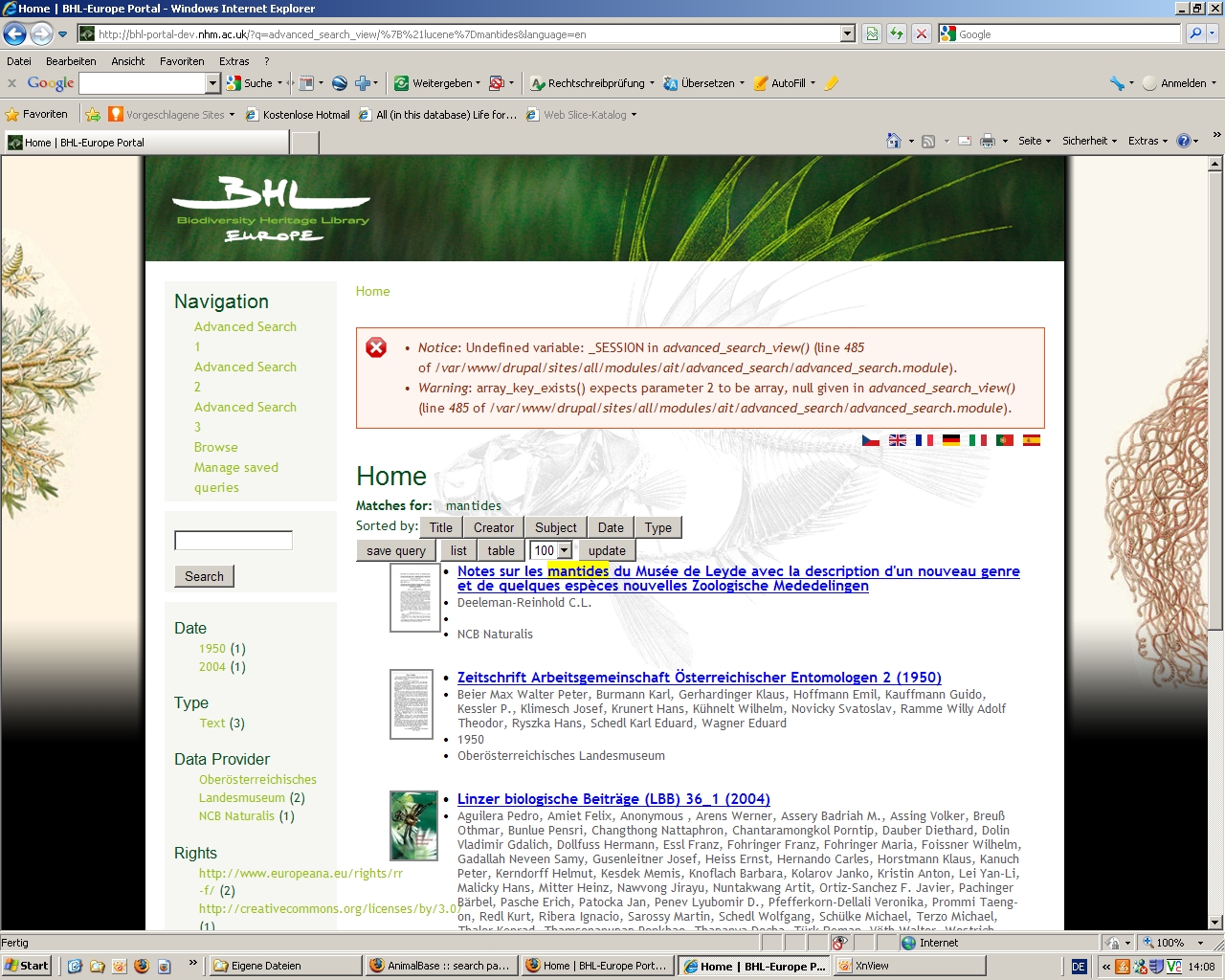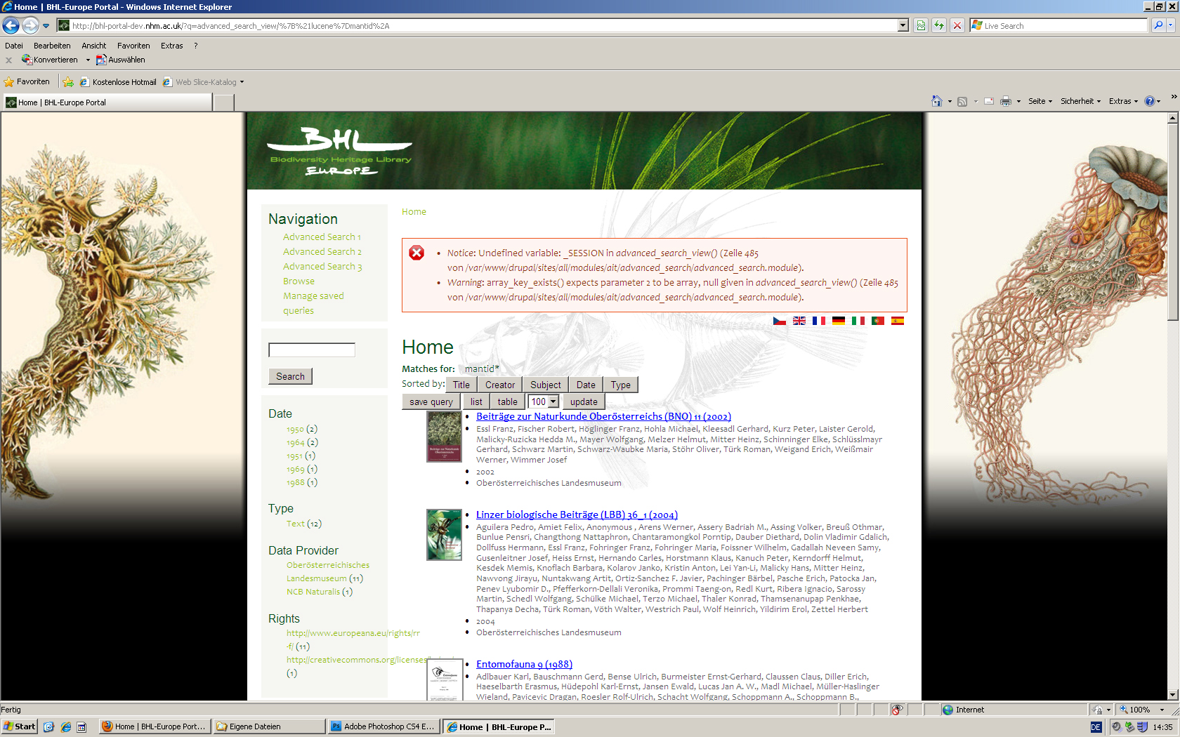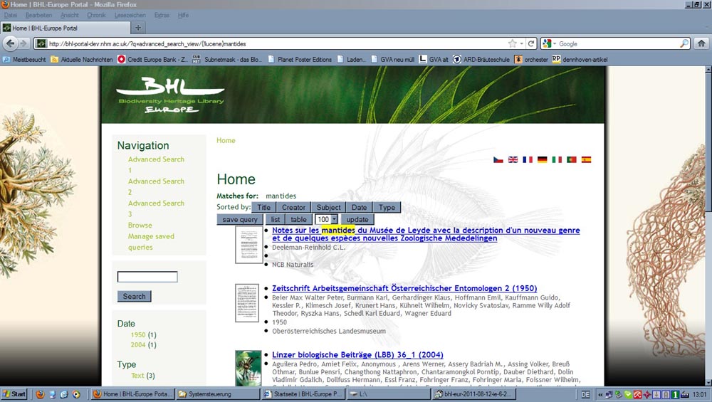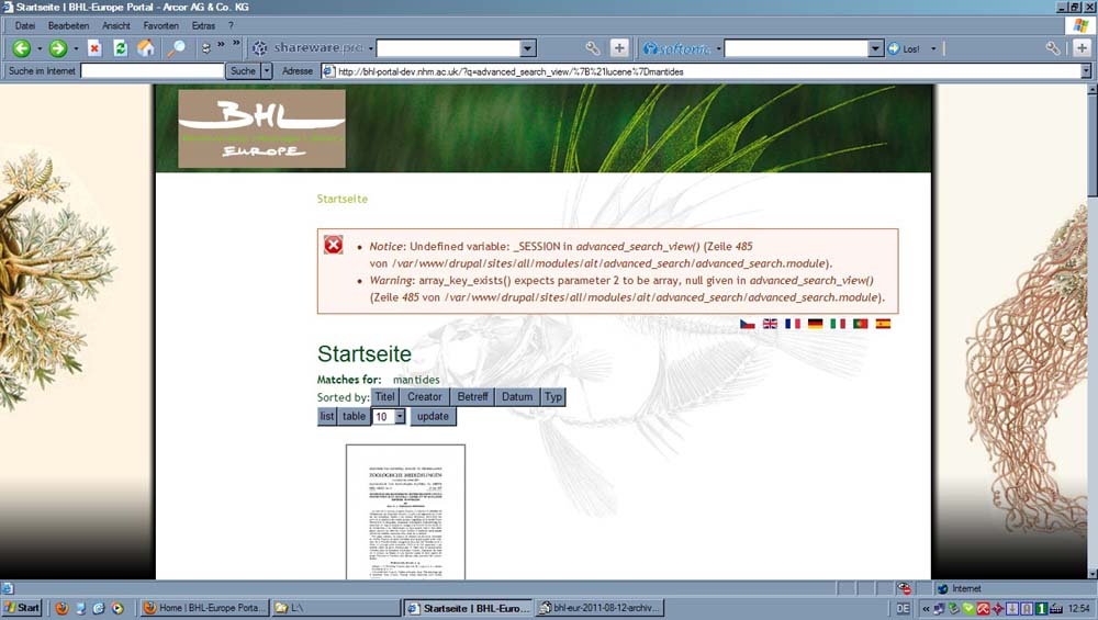 Differences of the BHL-Europe web page between browsers (MF = Mozilla Firefox, IE = Internet Explorer):
