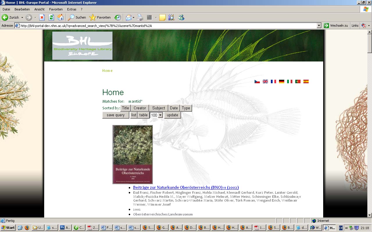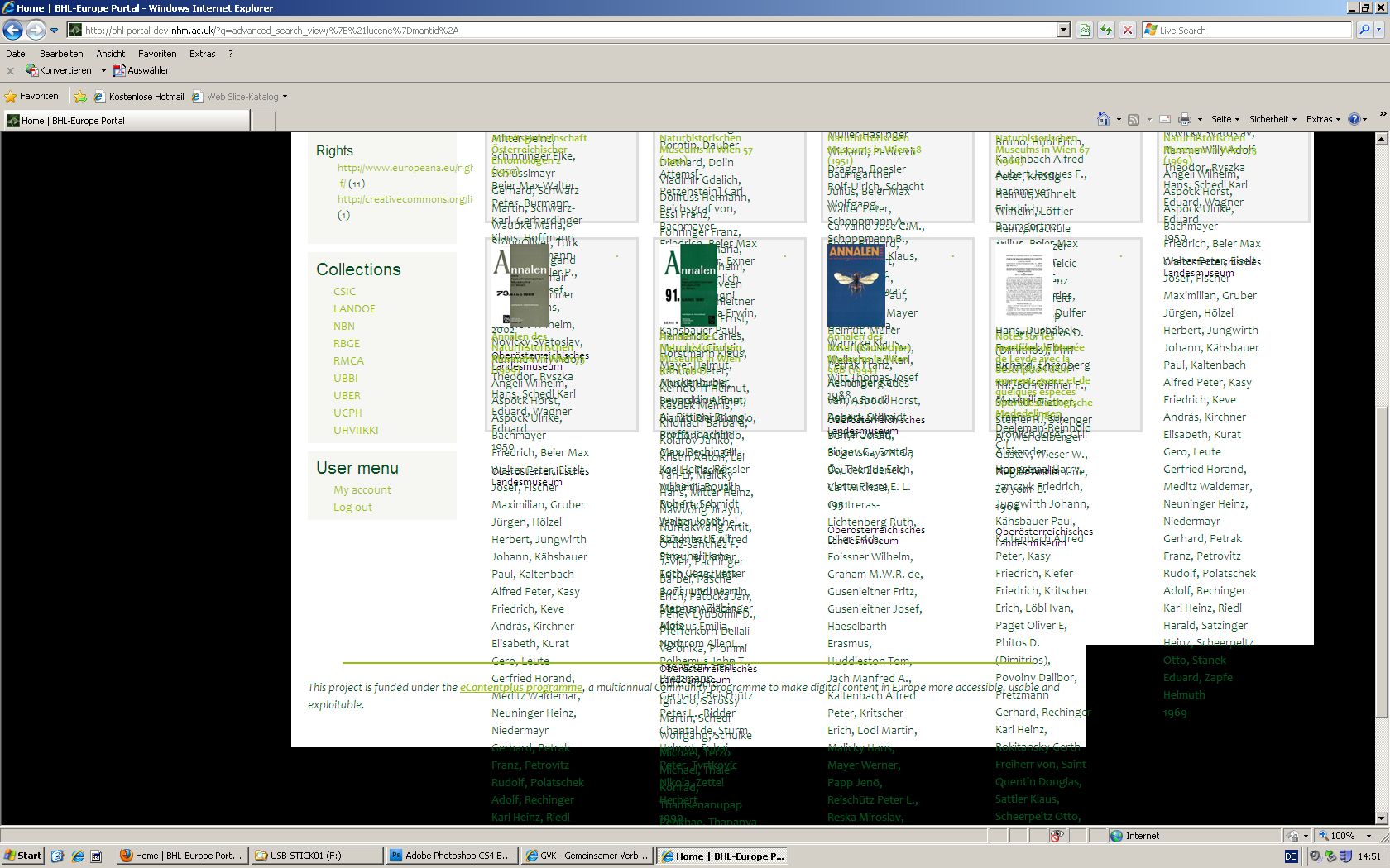 BHL portal main page, in the logged in mode (except IE 6 (2004),