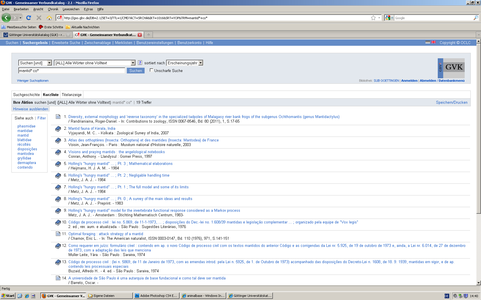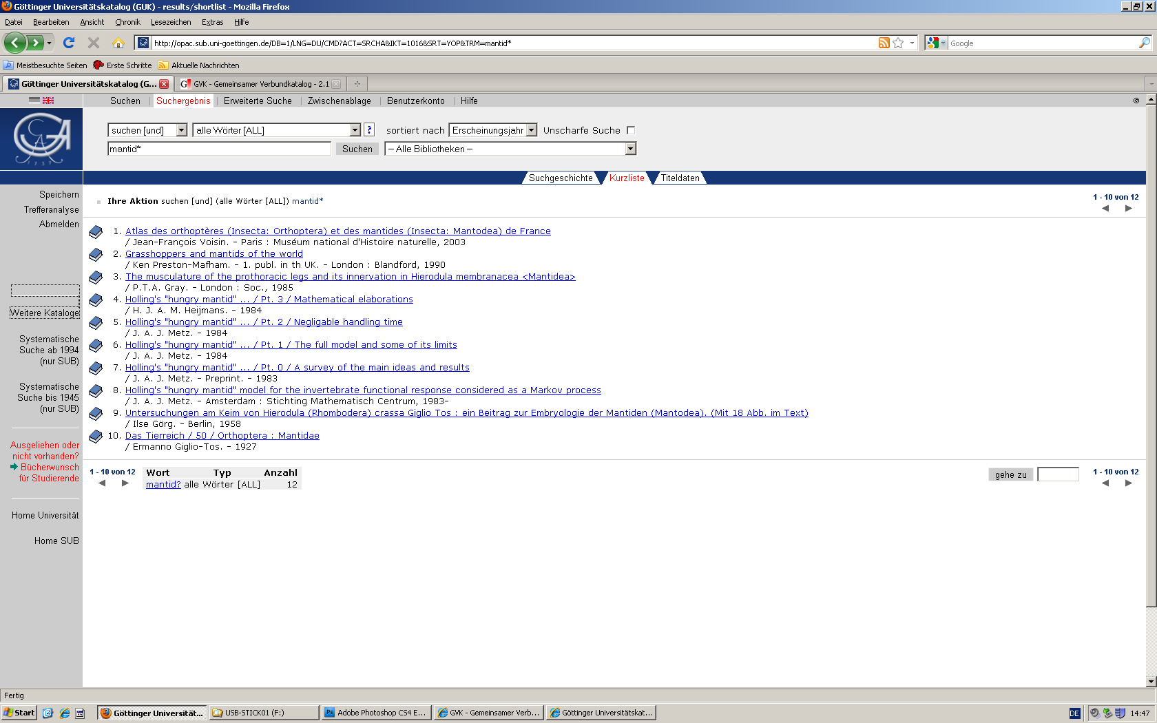 GUK (OPAC Göttingen) in Mozilla Firefox 2010 s